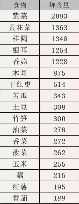 摘要:2、多食含钾、含钙量高的食物 于康表示,下面这些含钾量高的食物可以多吃。如香菇、紫菜、海带、银耳、香蕉等。 每100克常见食物含钾量(单位:毫克